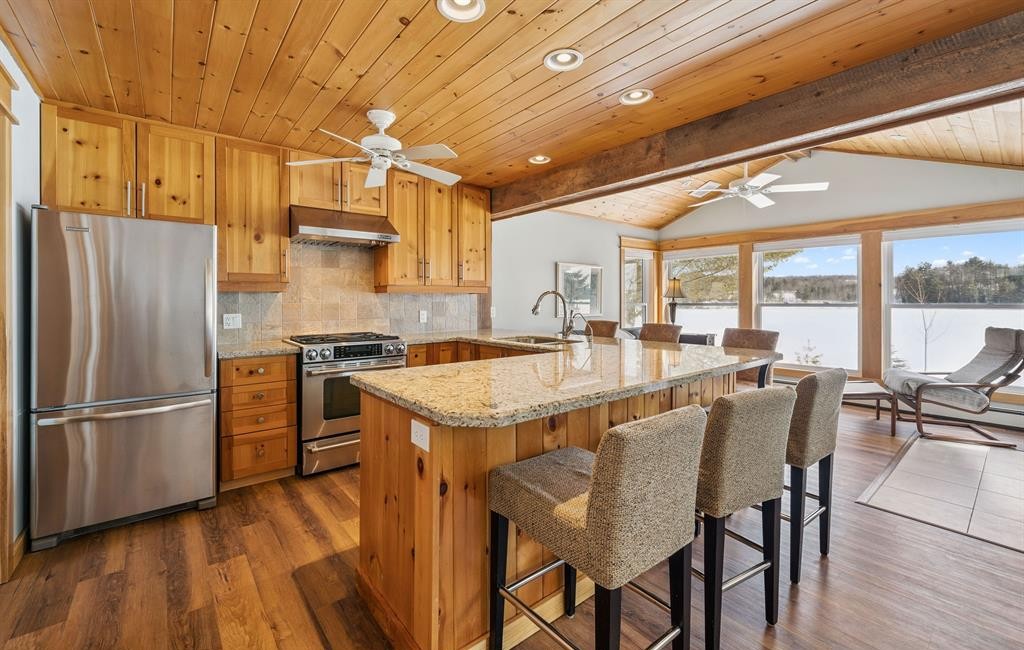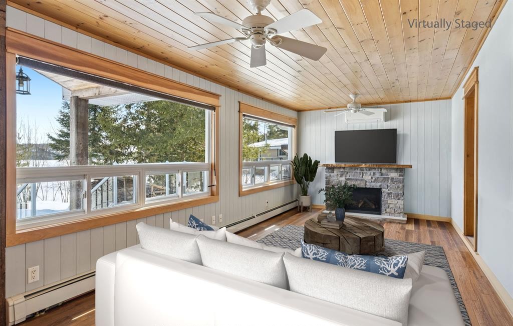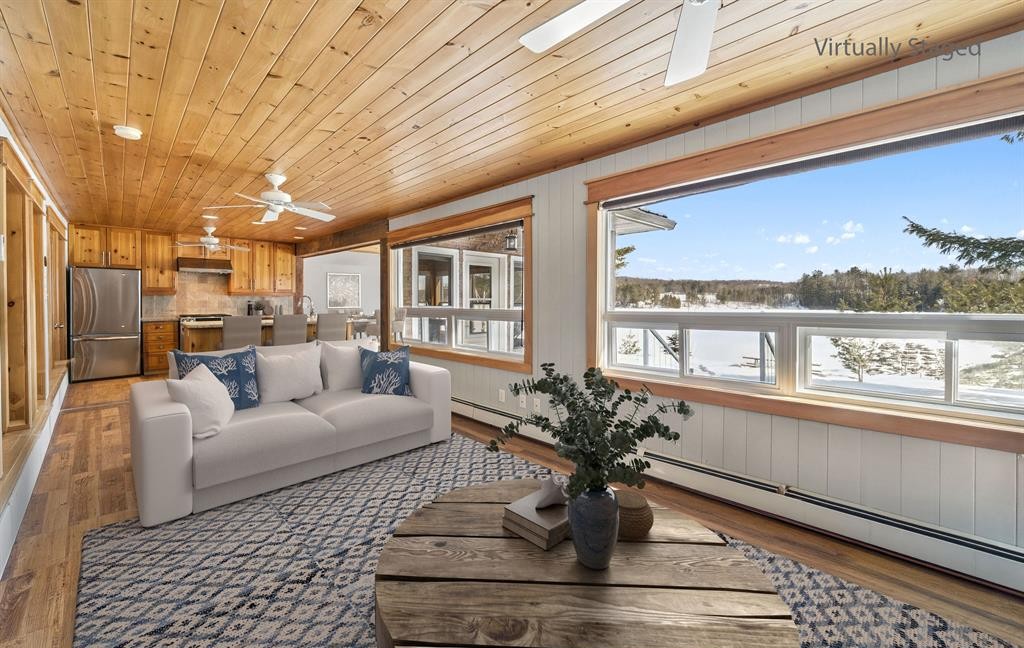 This beautiful property invites you to experience lakeside living at an affordable price, available for the spring of 2026! The fully winterized cottage features 3 bedrooms + a loft, 2 full bathrooms with heated floors, and a separate guest bunkie for hosting friends and family. An open-concept living room and kitchen, warmed by a cozy fireplace, offer indoor space to unwind and connect with others. 3 ductless mini-split systems for AC with heat pumps in the cottage offer all-season comfort in addition to the heating radiators. The spacious lakeside deck is great for barbequing and is accessed directly from the living room/kitchen, making it the ideal spot for unwinding and entertaining. The property is level, with no steps to the lake, making it perfectly accessible for all ages to enjoy the waterfront. Enjoy long lake vistas and stunning sunrises from the comfort of your lounge chair or the dock. A handy shed for water toys, and a carport, complete this year-round cottage getaway. Additional features include a drilled well and 8+ parking spots. This great opportunity in the heart of Muskoka is just a short distance from the village of Port Carling & town of Bracebridge. And the idyllic retreat is located on a year-round, municipally maintained road! A must-see property for those wanting to start experiencing cottage life in Muskoka this summer.